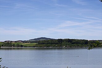 | Wallersee (Bezirk Salzburg-Umgebung): Blick vom Henndorfer Strand (Gemeinde Henndorf am Wallersee) auf Bayerham (links) und einen Teil von Zell am Wallersee (Mitte; beide Stadtgemeinde Seekirchen am Wallersee). Im Hintergrund der Buchberg (Gemeinden Obertrum am See und Mattsee). | Eigenes Werk | Eweht | Datei:Wallersee -Bayerham - Zell am Wallersee.jpg | |