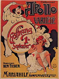 | Wien-Mariahilf, Apollo-Variété, Plakat zur Eröffnung am 1. September 1904. | Eigenscan aus: Tagebuch der Straße / Wiener Plakate, Wien 1981, ISBN 3-215-04576-1 . | Emil Ranzenhofer | Datei:Wien, Apollo-Variété, Plakat zur Eröffnung am 1. September 1904.jpg |