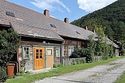 | Der nordwestliche Wohnblock der ehemaligen Bergknappensiedlung in der niederösterreichischen Marktgemeinde Puchberg am Schneeberg . | Eigenes Werk | C.Stadler/Bwag | Datei:Puchberg - Bergknappensiedlung.JPG |