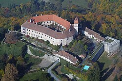 | Luftaufnahme (Südansicht) der burgenländischen Marktgemeinde Bernstein mit der Burg links hinten. | Eigenes Werk | C.Stadler/Bwag | Datei:Bernstein (Burgenland) - Luftaufnahme.JPG | |
