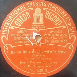 | Schallplatte von Bertha Foerster-Lauterer (Wien 1907) | Eigenes Werk | Zylberglajs | Datei:Foerster-Lauterer, Bertha.jpg |