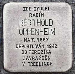 | Berthold Oppenheim (1867-1942), | https://kehila-olomouc.cz/rs/soucastnost/stolpersteine-2/rabin-berthold-oppenheim/ | nezjištěn (neznámí) | Datei:Rabín Berthold Oppenheim.jpg | |