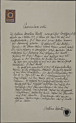 | Curriculum vitae of Betty Kurth (1878-1948), autograph | Internetseite Wiener Kunstgeschichte | Betty Kurth 1911 | Datei:Betty Kurth, Eigenhändiger Lebenslauf um 1910.jpg | |