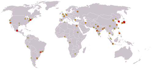 | Tokio (Metropolregion) | 13,7 | 20,3 | 26,6 | 30,3 | 33,6 | 35,6 | 37,8 | 37,2 | |