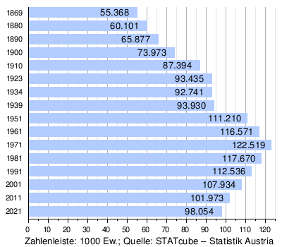 - ↑ Statistik Austria – Bevölkerung zu Jahresbeginn nach administrativen Gebietseinheiten (Bundesländer, NUTS-Regionen, Bezirke, Gemeinden) 2002 bis 2024 (Gebietsstand 1.1.2024) (ODS)