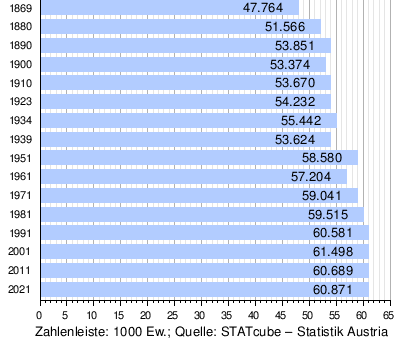 - ↑ Statistik Austria – Bevölkerung zu Jahresbeginn nach administrativen Gebietseinheiten (Bundesländer, NUTS-Regionen, Bezirke, Gemeinden) 2002 bis 2024 (Gebietsstand 1.1.2024) (ODS)
