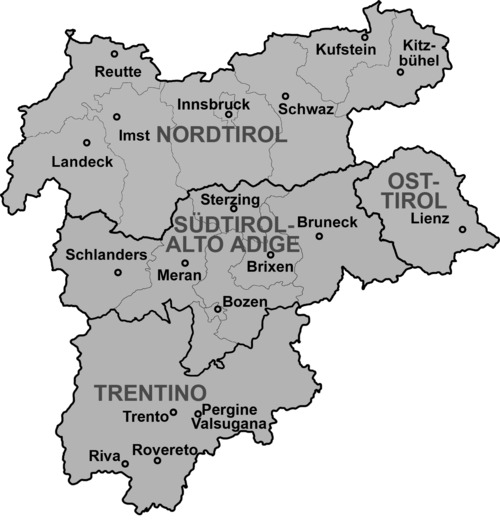 Heute bilden die vier Landesteile in Österreich und Italien die gemeinsame Europaregion Tirol-Südtirol-Trentino.[1]