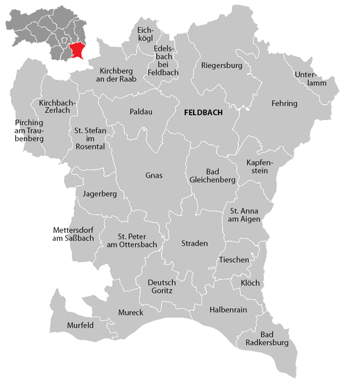 3.189 | 39,06 | 82 | Feldbach | 079 Kirchbach–Labilltal | Markt- gemeinde |