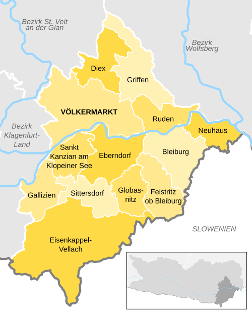 | Bezirk Völkermarkt | Eigenes Werk ( Originaltext: selbst erstellt ) | Joschi Täubler | Datei:Eisenkappel-Vellach im Bezirk VK.png | |