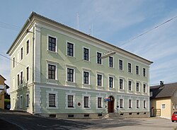 | Das denkmalgeschützte, ehemalige Gerichtsgebäude in Lembach im Mühlkreis entstand 1856 als dreigeschoßiger Bau mit flachem Walmdach. Dieses Bild zeigt das in Österreich unter der Nummer 14460 denkmalgeschützte Objekt. ( Commons , de , Wikidata ) | Eigenes Werk | Michael Kranewitter | Datei:Bezirksgericht Lembach I.jpg | |
