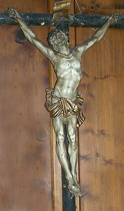 | Crucifix by Franz Grünwald da Nudrei from St. Ulrich in Gröden - Ortisei Val Gardena | Eigenes Werk | This Photo was taken by Wolfgang Moroder . Feel free to use my photos, but please mention me as the author and send me a message . Dieses Bild ist nicht gemeinfrei . Dies bedeutet, dass es u. a. Urheberrechtsschutz genießt. Es darf nur nach den hier genannten Regeln (oder mit ausdrücklicher Genehmigung des Urhebers) genutzt werden. Dies schließt insbesondere eine Verwendung in sozialen Netzwerken aus , deren Nutzungsbedingungen der hier aufgeführten Lizenz nicht entsprechen. Bitte lade an dieser Stelle keine auch nur minimal veränderte Fassung ohne Rücksprache mit dem Urheber hoch. Der Urheber möchte Korrekturen nur an der ihm vorliegenden unkomprimierten Quelle vornehmen. So ist gewährleistet, dass die Änderungen erhalten bleiben und dass keine unnötigen Kompressionsartefakte entstehen. Wenn du meinst, dass Änderungen erforderlich sein sollten, informiere bitte den Urheber oder lade eine Bearbeitung als neues Bild unter neuem Namen und unter Verwendung der Vorlage Derivat bzw. der Vorlage Extrakt hoch. | Datei:Franz Grünwald Nudrei Gherdëina.jpg | |