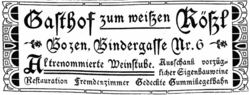 | Advertisement for the Hans Feller book printer within the Bozner Nachrichten newspaper, June 5, 1898 | Bozner Nachrichten (1898) | digital.tessmann.it, freely licensed under CC 4.0 | Datei:BZZ 1908 03 17 8 Druckerei Feller Bindergasse.png | |