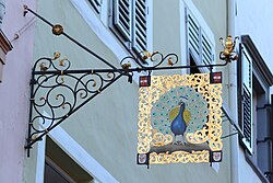 | Diese Datei zeigt das Baudenkmal mit der Nummer 13769 in Südtirol. | Eigenes Werk | Aciarium | Datei:Wirtshausschild Gasthaus Pfau Bozen.jpg |