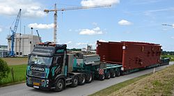 | Anlieferung des Biomassekessel für das Biomasseheizkraftwerk Steyr. Max. 108 bar und 545°C. | Eigenes Werk | Sensenschmied | Datei:Antransport Flossenwandkessel Steyr.jpg | |