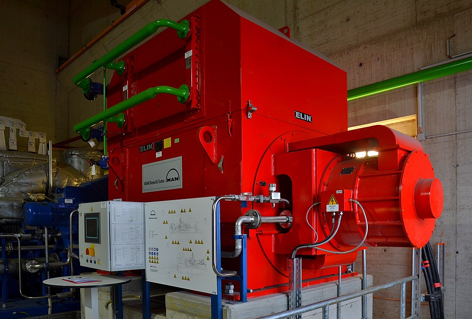 Ansicht Turbogenerator im Biomasseheizkraftwerk Steyr.