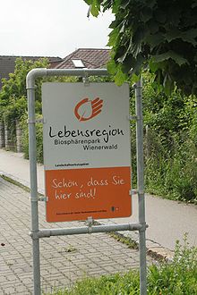 | Tafel bei der Einfahrt in den de:Biosphärenpark Wienerwald in Pfaffstätten | Eigenes Werk | Karl Gruber | Datei:Pfaffstätten 4216.jpg | |