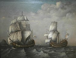 | El lienzo representa a la fragata comandada por el marino español Blas de Lezo remolcando, hacia 1710, al navío británico Stanhope . | Eigenes Werk | Autor/-in unbekannt Unknown author | Datei:LaFragataDeBlasDeLezoRemolcandoAlStanhopeHaci1710.jpg |