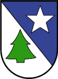 Der Gemeinde wurde 1969 folgendes Wappen verliehen: Im schräg geteilten Schild im oberen blauen Feld ein fünfzackiger silberner Walliserstern, im unteren silbernen Feld eine grüne Tanne in der Form einer alten Hausmarke.[11]