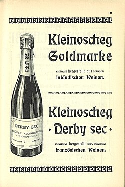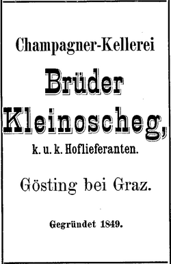 - ↑ Champagnerkellerei Brüder Kleinoscheg. In: Jubiläums-Festnummer der kaiserlichen Wiener Zeitung 1703–1903. Beilage Kommerzieller Teil. Alfred von Lindheim. Druck und Verlag K. K. Hof- und Staatsdruckerei, Wien, 8. August 1903, S. 156, abgerufen am 1. Juli 2009.