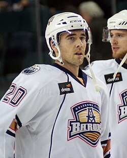 | Brad Moran, born March 20, 1979 in Abbotsford, British Columbia, is a Canadian professional ice hockey forward. He was selected by the Buffalo Sabres in the 7th round, 191st overall, of the 1998 NHL Entry Draft. He has played in the National Hockey League (NHL) with the Columbus Blue Jackets and Vancouver Canucks. Photo was taken on February 18, 2011 during an American Hockey League (AHL) regular season game. | Flickr : #20 - Brad Moran | 5of7 | Datei:Brad Moran.jpg | |