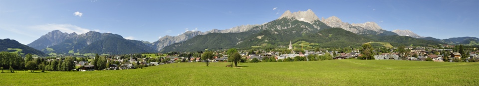 Panoramaaufnahme von Saalfelden am Steinernenen Meer aus dem Sommer 2009 | Eigenes Werk | Fabio Saber | Datei:Saalfelden Am Steinernen Meer - Panorama.png | |