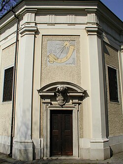 | Fassadendetail mit Sonnenuhr der Brigittakapelle in Wien | selbst erstellt | Pappenheim at de.wikipedia | Datei:Brigittakapelle Fassadendetail mit Sonnenuhr.jpg | |