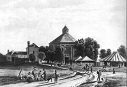 | Die Brigittakapelle in Wien auf einem Kupferstich des 19. Jahrhunderts | gescannt, Original im Besitz des Benutzers | unbekannter Kupferstecher, 1. Hälfte 19. Jahrhunderts | Datei:Brigittakapelle Kupferstich 1826.jpg |