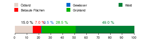 Von der Fläche entfallen ca. 12,60 Quadratkilometer (40,2 Prozent) auf den Dauersiedlungsraum.