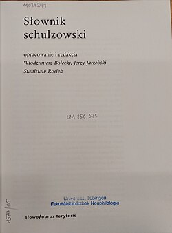 Włodzimierz Bolecki, Jerzy Jarzębski, Stanisław Rosiek (ed.): Słownik schulzowski . Gdańsk, 2003 | booktitle | Autor/-in unbekannt Unknown author | Datei:Słownik schulzowski 2003 title.jpg | |