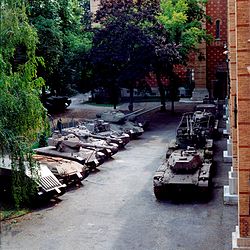Das von Kaiser Franz JosephI. 1869 als k.k. Hofwaffenmuseum eröffnete Heeresgeschichtliche Museum (HGM) im Wiener Arsenal ist das Leitmuseum des Österreichischen Bundesheeres. Es präsentiert sowohl die Geschichte der kaiserlichen Armee ab Beginn des 17. Jahrhunderts als auch jene des Bundesheeres ab dem Jahr 1920. Im Museum sind beispielsweise die ältesten Uniformen des Bundesheeres aus den 1920er Jahren ausgestellt.[149] Im HGM finden auch Sonderausstellungen zu militärischen Themen statt, so zum Beispiel „50Jahre Bundesheer“ (2005), „Your Buddy– Das Jagdkommando“ (2007), „Spätsommer’68. Der Einsatz des Österreichischen Bundesheeres“ (2008) und „Schutz und Hilfe. 50Jahre Auslandseinsätze des Österreichischen Bundesheeres (2010)“.