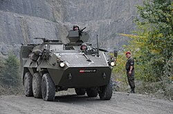Das Schwergewicht bildet der Bereich der gepanzerten und geschützten Mobilität, insbesondere der Ergänzung der gepanzerten und geschützten Fahrzeugflotte, etwa die in Straß und bald auch in Zwölfaxing und Güssing[59] stationierten Pandur-Evolution-Radpanzer (bis zu 325 Systeme[60]), sowie dringend benötigter Transportfahrzeuge.