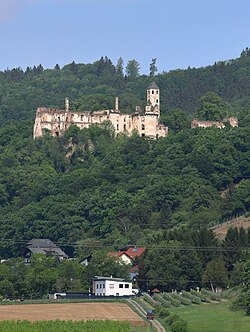 - Die Burgruine Hohenegg auf der Seite der Gemeinde Hafnerbach