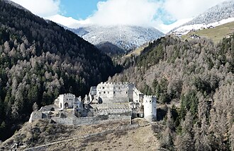 Erstmals 1259 wird die Burg als landesfürstlicher Besitz der Grafen von Tirol genannt, scheint aber bereits um 1200 von den Vögten von Matsch als adeliger Stützpunkt gegründet worden zu sein.[1] Um 1315 wurde die Anlage ausgebaut und die Burghut von den Tirolern den Herren von Lichtenberg anvertraut, die sie um 1400 mit berühmt gewordenen heldenepischen Fresken ausstatten ließen. Sie stellen neben dem Freskenzyklus auf Schloss Runkelstein den bedeutendsten Profanzyklus im Tiroler Raum dar, wurden zwischen 1908 und 1912 wegen Gefährdung abgenommen und in das Tiroler Landesmuseum nach Innsbruck gebracht. Einige wenige Fresken verblieben in der Kapelle der Ruine und wurden 2006 restauriert. Bei Grabungen seit 1994 wurden einige bedeutende Fragmente von abgefallenen Fresken wieder geborgen.[2]