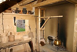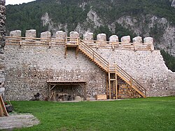 Neben der Wiederherstellung von hölzernen Stockwerken im Bergfried und einem begehbaren Wehrgang an der Nordseite der Anlage, wurde 2007 im Burghof ein Holzgebäude in Form eines Ständerbaues mit Pultdach errichtet, wie es einst in der Burg gestanden haben könnte. Die Basis dafür bildeten archäologische Befunde von Burganlagen, welche auf Stuben- und Küchenfunktionen schließen ließen. Diese Kombination ermöglichte das Kochen auf einer offenen Feuerstelle und zugleich das Beschicken eines Kachelofens von der Küche aus, wodurch die Stube rauchfrei gehalten wurde.