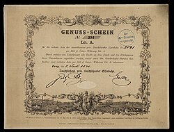 | Genuss-Schein der Buschtěhrader Eisenbahn vom 1. Juli 1870 | Sammlung eines Mitglieds des Ersten Deutschen Historic-Actien-Clubs e.V (EDHAC e.V.); (kl) | Unbekannte Autoren und Grafiker; Scan vom EDHAC e.V. | Datei:Buschtěhrader Eisenbahn 1870.jpg | |