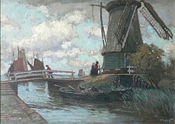 | Windmühle an der Gracht, Öl auf Leinwand, 59 x 83 cm, signiert, Privatbesitz | Digitalfoto v. 18.10.2006, RKE ( Diskussion ) 15:32, 1. Jan. 2013 (CET) | Carl O´Lynch of Town (1869-1942) | Datei:Windmühle an der Gracht.jpg |