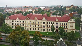 - 1880 Bürgerschule in Saaz (Žatec) (ein Bau von 97 m Länge, unter Denkmalschutz)