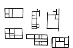| Auswahl an Grundrissen von Wohnhäusern der Canabae legionis Carnuntum. | eigene Arbeit | Veleius | Datei:Auswahl Grundrisse WG Lagerstadt.png | |