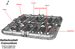 - ↑ Christian Gugl, Mario Wallner, Wolfgang Neubauer, Michael Doneus, Klaus Löcker: Die militärischen Anlagen in Carnuntum. In: Franziska Beutler u. a. (Hrsg.): Der Adler Roms. Carnuntum und die Armee der Caesaren. Nünnerich-Asmus, Mainz 2017, ISBN 978-3-945751-86-2, S. 76–85, hier S. 82.