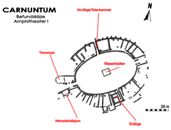 | Befundskizze Amphitheater I (Lagerstadt Carnuntum). | eigene Arbeit | Veleius | Datei:Befunde Amphitheater I.png | |
