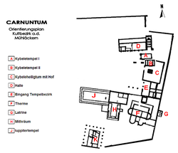 - ↑ Werner Jobst 2006, S. 234; Verena Gassner: Kulträume mit seitlichen Podien in Carnuntum. Überlegungen zum Tempel II im Iuppiterheiligtum auf dem Pfaffenberg, S. 80–88.