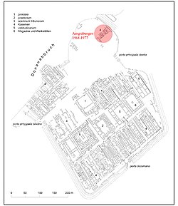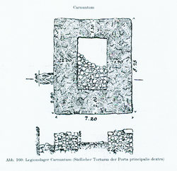 - ↑ Werner Jobst 2006, S. 86–87 und 234; Christian Gugl 2012, S. 413; Christian Gugl, Michael Doneus 2014, S. 67–72; Laszlo Borhy 2014, S. 34; August Obermayr 1967, S. 132; Christian Gugl, Mario Wallner, Wolfgang Neubauer, Michael Doneus, Klaus Löcker: Die militärischen Anlagen in Carnuntum. In: Franziska Beutler u. a. (Hrsg.): Der Adler Roms. Carnuntum und die Armee der Caesaren. Nünnerich-Asmus, Mainz 2017, ISBN 978-3-945751-86-2, S. 76–85, hier S. 82.