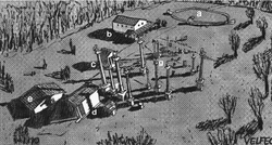 | Größe | A) 195 × 178 Meter = 3,4 ha B–D) 207 × 177 Meter = 3,6 ha |