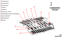 | Befundskizze Castra Singularis, Quartier der Statthaltergarde in der Lagerstadt Carnuntum, Stand 2016. | Eigene Arbeit | Veleius | Datei:BS Castra Singularium Carnuntum.png | |