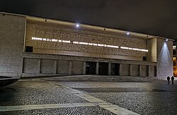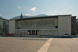 | Facade of the former headquarter of the Fascist party in Bozen-Bolzano now displaying a quote by Hannah Arendt (2018) | Eigenes Werk | Bartleby08 | Datei:Fassade finanzamt bozen 2018.jpg | |