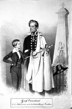 | Christoph Graf Cavriani (1780-1857) mit seinem Sohn Franz (1825-1866). | Foto einer Originallithographie der Albertina (Wien); Foto Peter Geymayer | Josef Kriehuber | Datei:Christoph Cavriani Litho.jpg | |