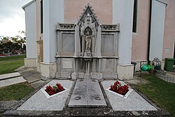 | Kath. Pfarrkirche hl. Pankratius, Wehrmauer und Friedhof. Familiengrab Cavriani an der Ostseite der Kirche. | Eigenes Werk | Braveheart | Datei:Kath. Pfarrkirche hl. Pankratius, Reisenberg 13.jpg | |