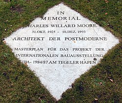 Gedenktafel, Charles Willard Moore , Am Tegeler Hafen 30, Berlin-Tegel , Deutschland | Selbst fotografiert | OTFW , Berlin | Datei:Gedenktafel Am Tegeler Hafen 30 (Tegel) Charles Willard Moore.jpg | |