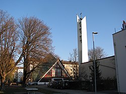 | Diese Datei zeigt das im Tiroler Kunstkataster erwähnte Objekt mit der ID 72774 . ( auf tirisMaps , PDF , weitere Bilder auf Commons , Wikidata ) | Eigenes Werk | Luftschiffhafen | Datei:Auferstehungskirche Innsbruck 04.jpg | |
