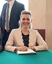 Am 31. Dezember 2019 wurde im Zuge der Regierungsbildung 2019 bekannt, dass sie in der Bundesregierung Kurz II Bundesministerin für Arbeit, Familie und Jugend werden sollte.[6][7][8][9][10] Am 7. Jänner 2020 wurde sie als Bundesministerin ohne Portefeuille von Bundespräsident Alexander Van der Bellen angelobt,[11] ab dem 8. Jänner war sie Bundesministerin im Bundeskanzleramt.[1] Am 29. Jänner 2020 wurde sie vom Bundespräsidenten nach Änderung des Bundesministeriengesetzes als Bundesministerin für Arbeit, Familie und Jugend in der Bundesregierung Kurz II angelobt.